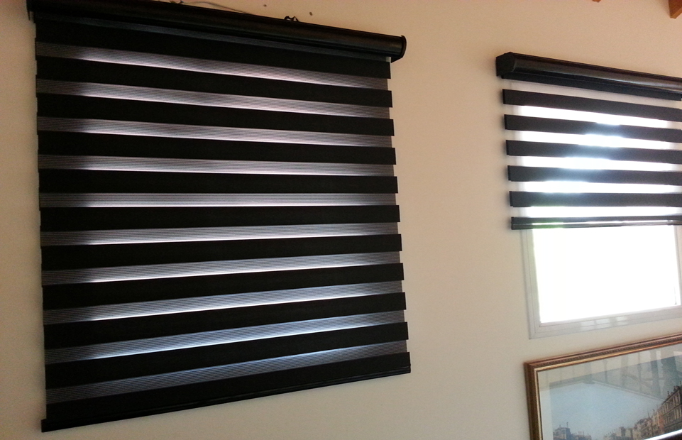 La Cortina Dual es un sistema innovador, son la combinacion de dos cortinas en un tejido que cuenta con franjas transparentes y traslucidas dando vision al exterior o privacidad sin perder iluminacion. Compuesto por cajon de aluminio con tapas, cadena y perfil de terminacion con rodillos que permite su deslizamiento
