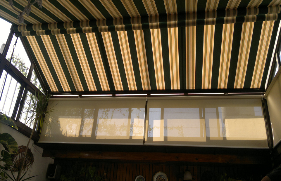 Es un toldo de estructura de un cerramiento de enrollar que esta compuesta de un tubo de enrollador arriba (en la parte superior), dos soportes que sujetan el rollo y un contrapeso de aluminio con ganchos que sirve para tensionar la lona o el pvc cuando este esta abierto. El accionamiento del toldo es manual, compuesto de una maquina reductora y una manivela o motorizado.
